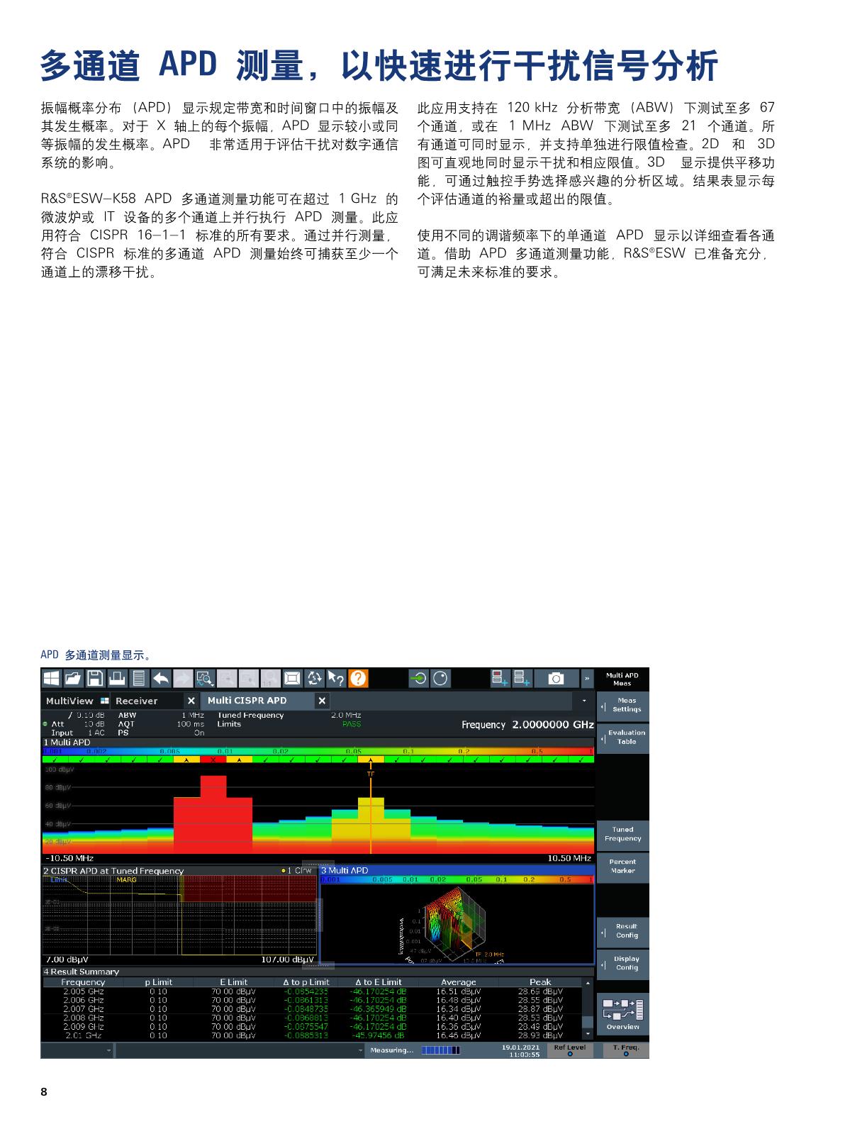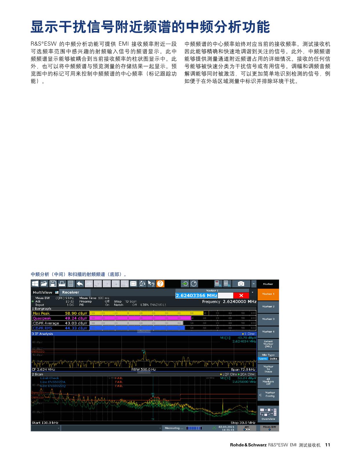 R&S?ESW 具有杰出的射頻特性、出色的動態(tài)范圍和令人滿意的測量精度,是快速、可靠地進行認證測量的絕佳之選。它滿足 CISPR、EN、MIL?STD-461、DO?160 和 FCC 標準的嚴苛要求。憑借基于 FFT 的時域掃描,R&S?ESW 能夠非??焖俚夭东@干擾頻譜并進行加權(quán)。帶瀑布圖功能的實時頻譜分析甚至可用于詳細分析極短的干擾信號。儀器的多視圖模式便于同時顯示多個操作模式的結(jié)果,保障使用簡便。