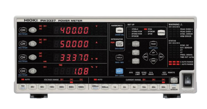 PW3336(2ch機(jī)型) PW3337(3ch機(jī)型) 從DC、單相2線到三相4線皆可測(cè)量。 可用于馬達(dá)、變頻器、功率調(diào)節(jié)裝置、電源等的開(kāi)發(fā)·生產(chǎn)??捎糜跈C(jī)床或空調(diào)設(shè)備等工業(yè)設(shè)備、家電設(shè)備的節(jié)能性能的掌握及確認(rèn)。PW3336系列(2ch)、PW3337系列(3ch)是擁有比本公司以往產(chǎn)品更高的精度,直接輸入方式下可進(jìn)行最大65A的電流測(cè)量的,并且標(biāo)配諧波分析功能的簡(jiǎn)單&高精度功率計(jì)。
