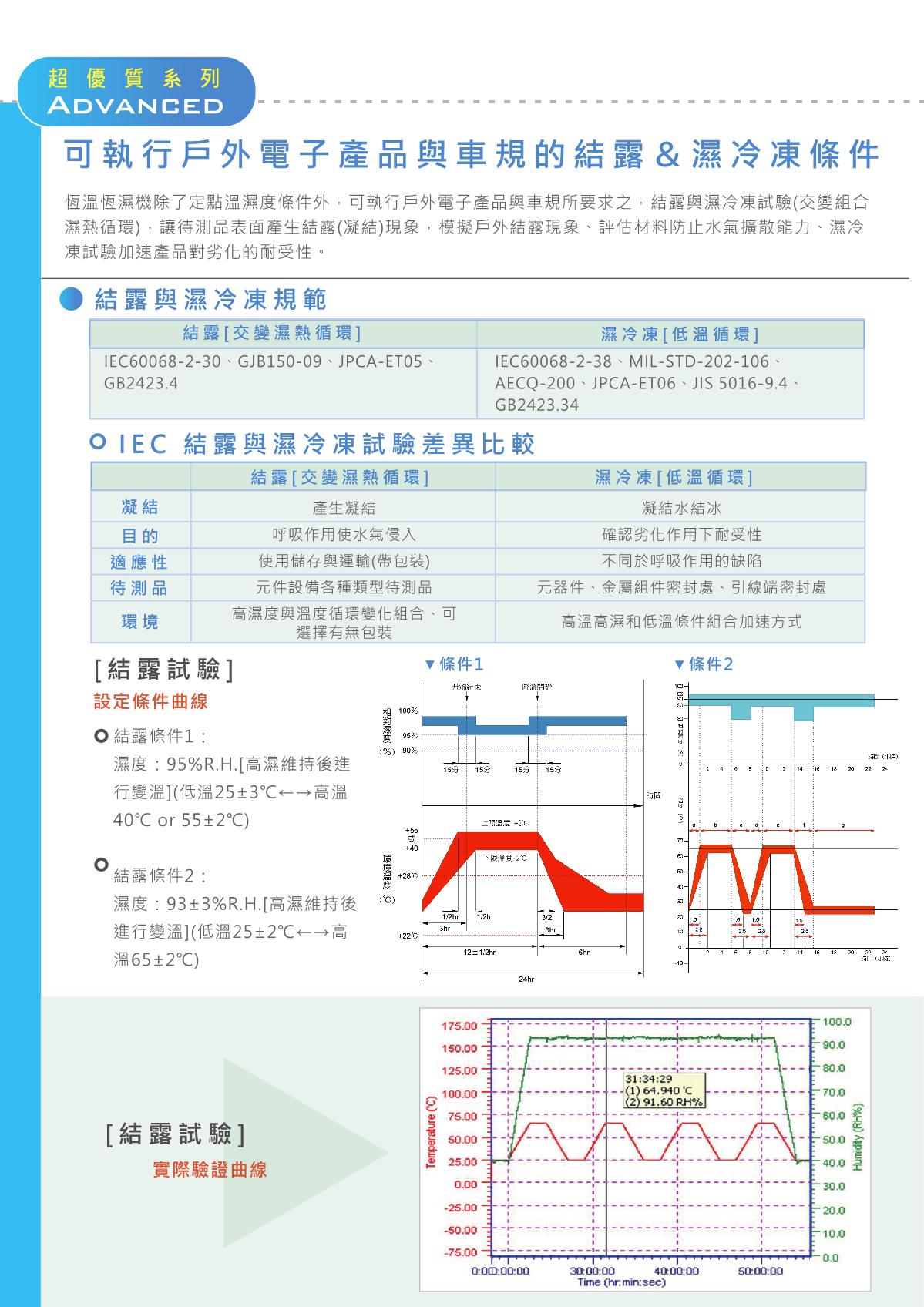 恒溫恒濕機(jī)的目的為模擬產(chǎn)品在氣候環(huán)境溫濕組合條件下(高低溫操作與儲(chǔ)存、溫度循環(huán)、高溫高濕、低溫低濕、結(jié)露試驗(yàn)…等),檢測產(chǎn)品本身的調(diào)節(jié)能力與特性是否改變。需符合國際性規(guī)范之要求(IEC、JIS、GB、MIL…)以達(dá)到國際間量測程序一致性(含測試步驟、條件、方法)避免認(rèn)知不同,并縮小測量不確定的因素范圍發(fā)生。