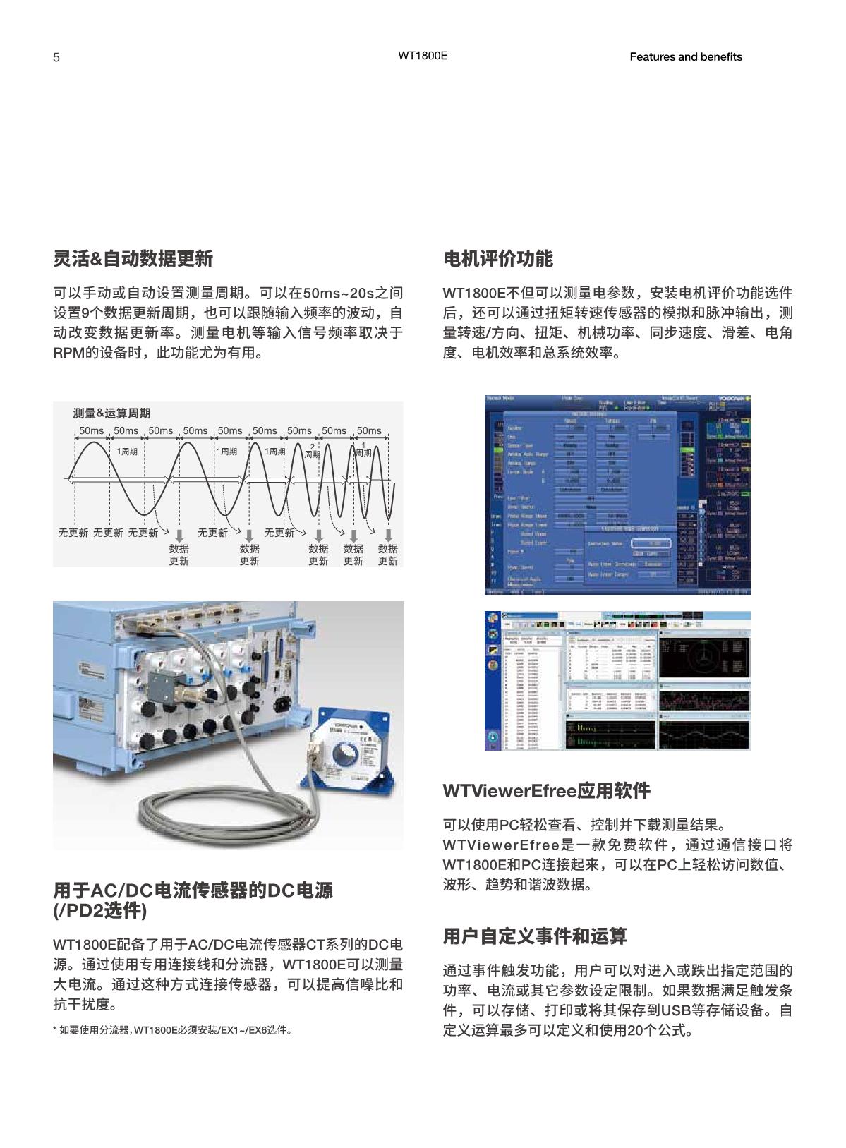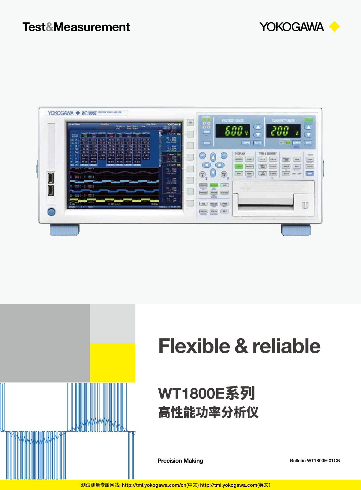 靈活 – WT1800E不但擁有最多6輸入通道、 寬量程顯示和分析功能, 還可以和電腦相連接,能在功率效率和諧波分析領(lǐng)域?yàn)榭蛻籼峁V泛的測(cè)量解決方案。