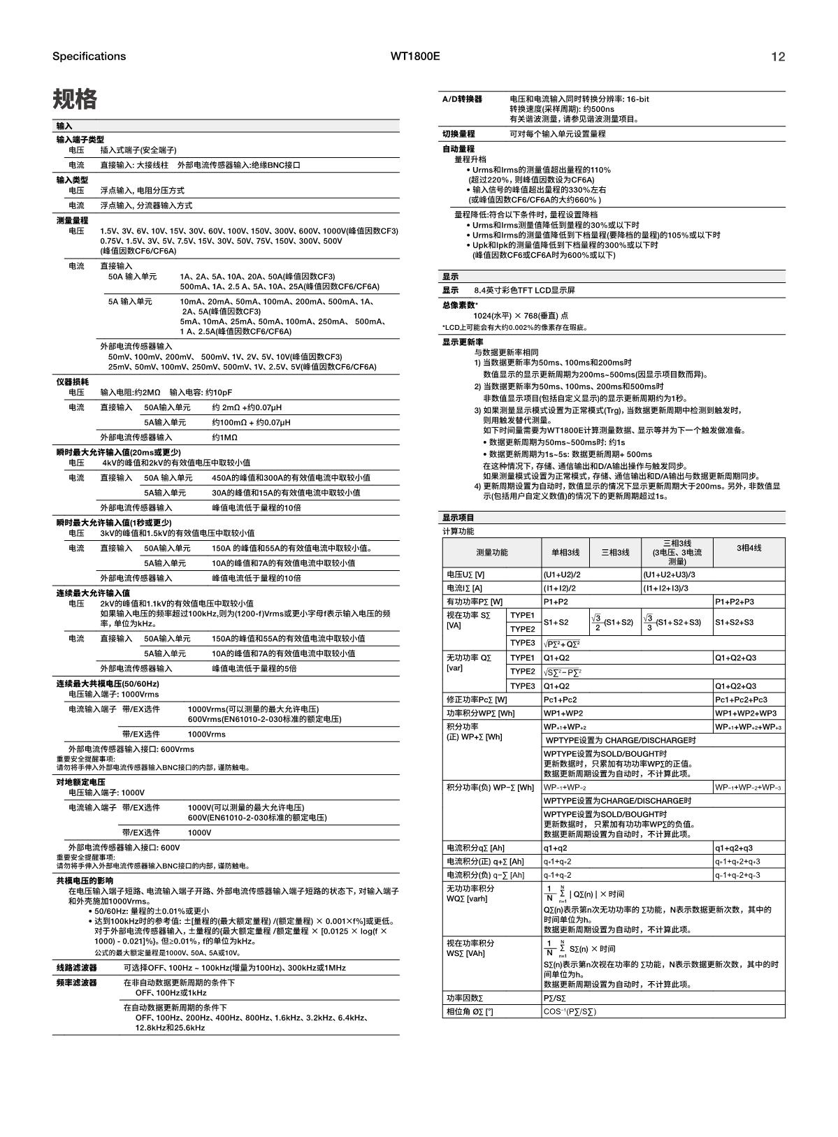 WT1800E系列 —— 功率分析儀