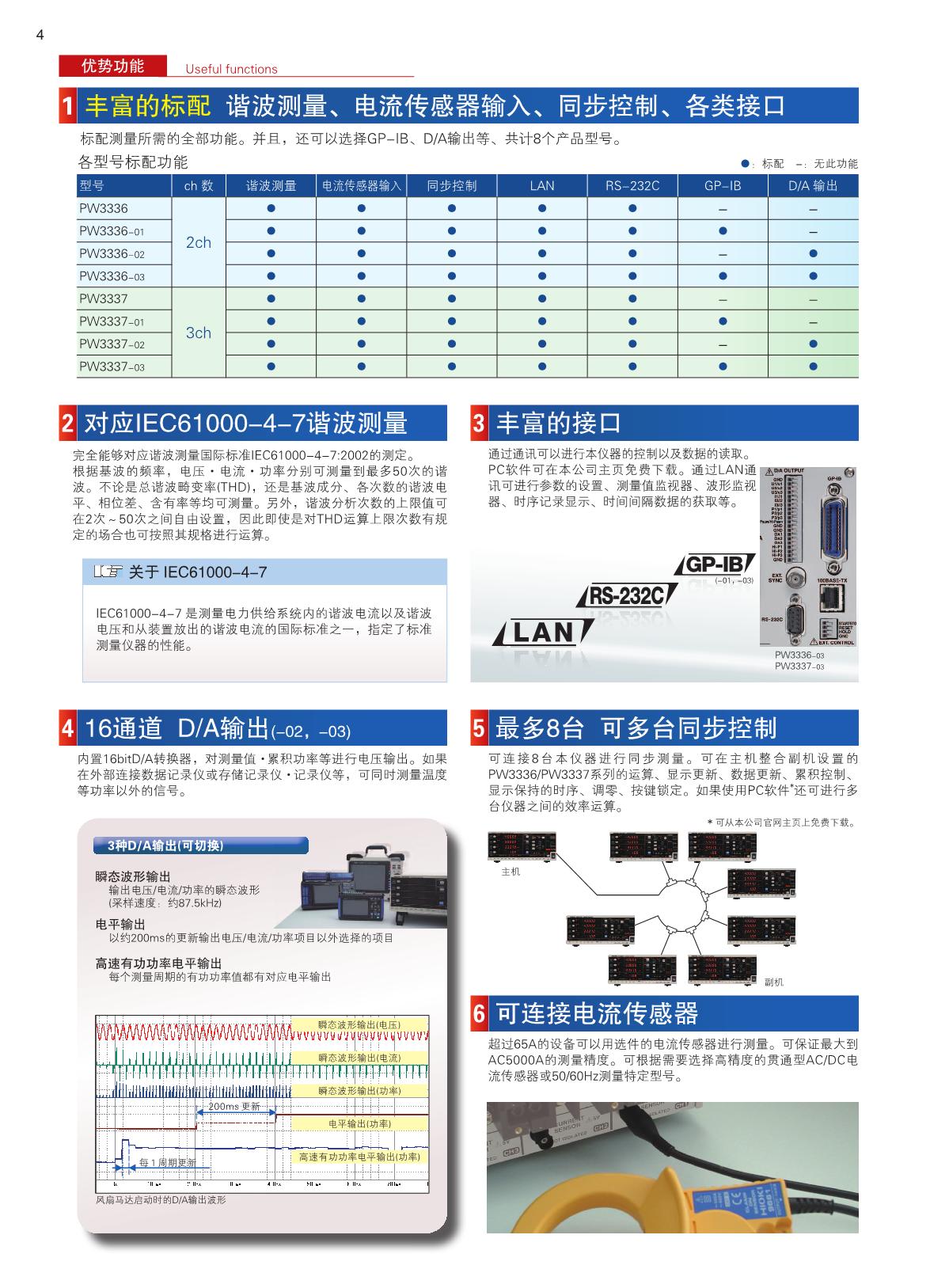 PW3336(2ch機(jī)型) PW3337(3ch機(jī)型) 從DC、單相2線到三相4線皆可測(cè)量。 可用于馬達(dá)、變頻器、功率調(diào)節(jié)裝置、電源等的開(kāi)發(fā)·生產(chǎn)??捎糜跈C(jī)床或空調(diào)設(shè)備等工業(yè)設(shè)備、家電設(shè)備的節(jié)能性能的掌握及確認(rèn)。PW3336系列(2ch)、PW3337系列(3ch)是擁有比本公司以往產(chǎn)品更高的精度,直接輸入方式下可進(jìn)行最大65A的電流測(cè)量的,并且標(biāo)配諧波分析功能的簡(jiǎn)單&高精度功率計(jì)。