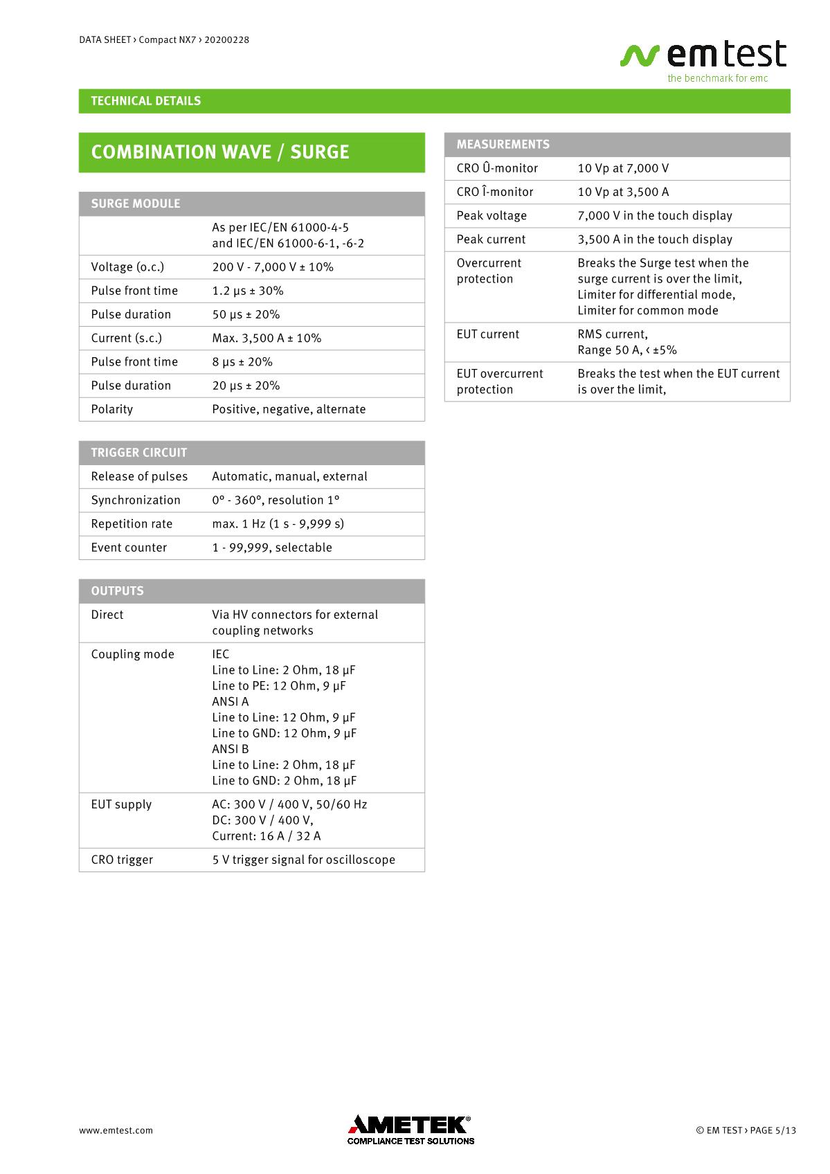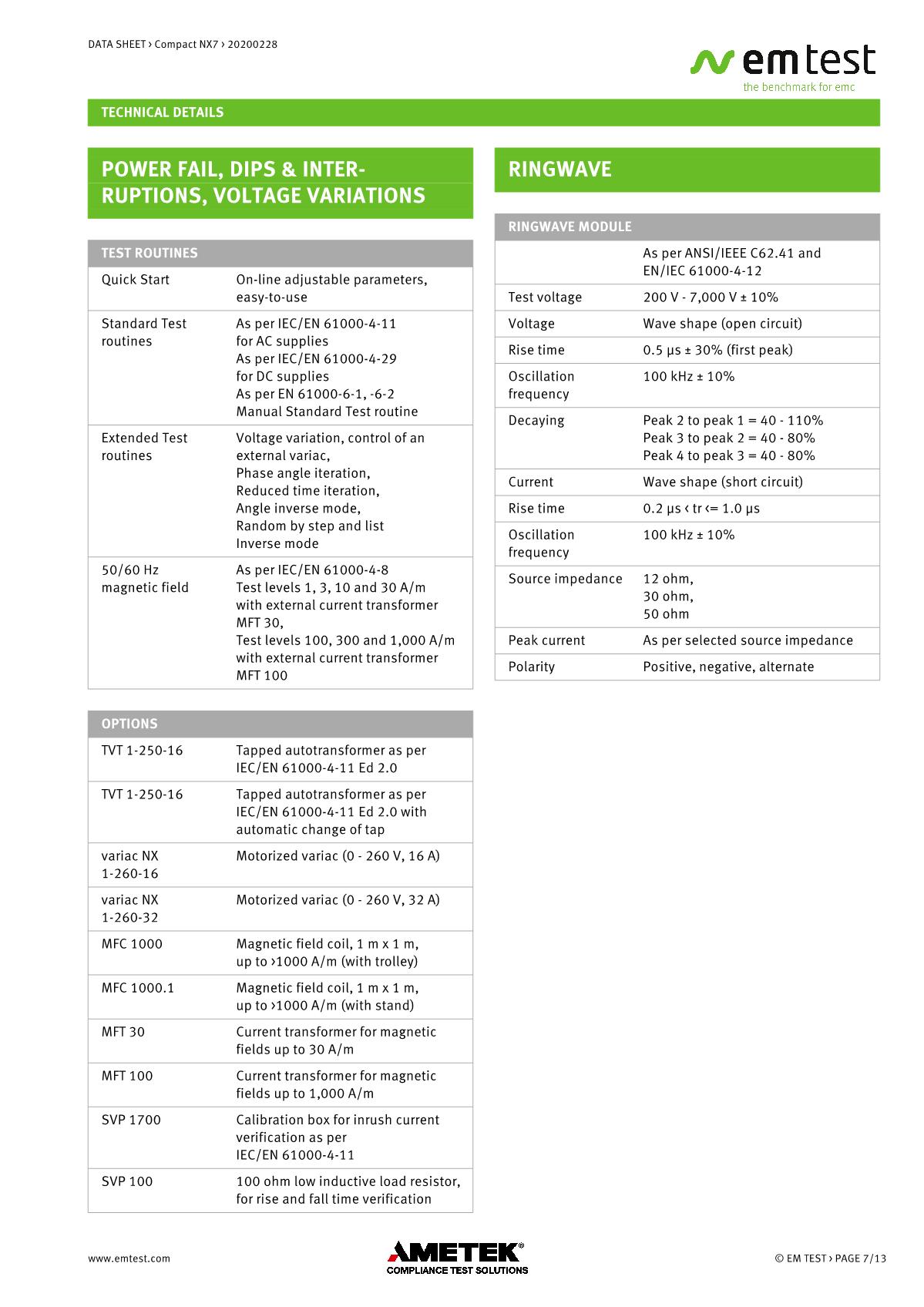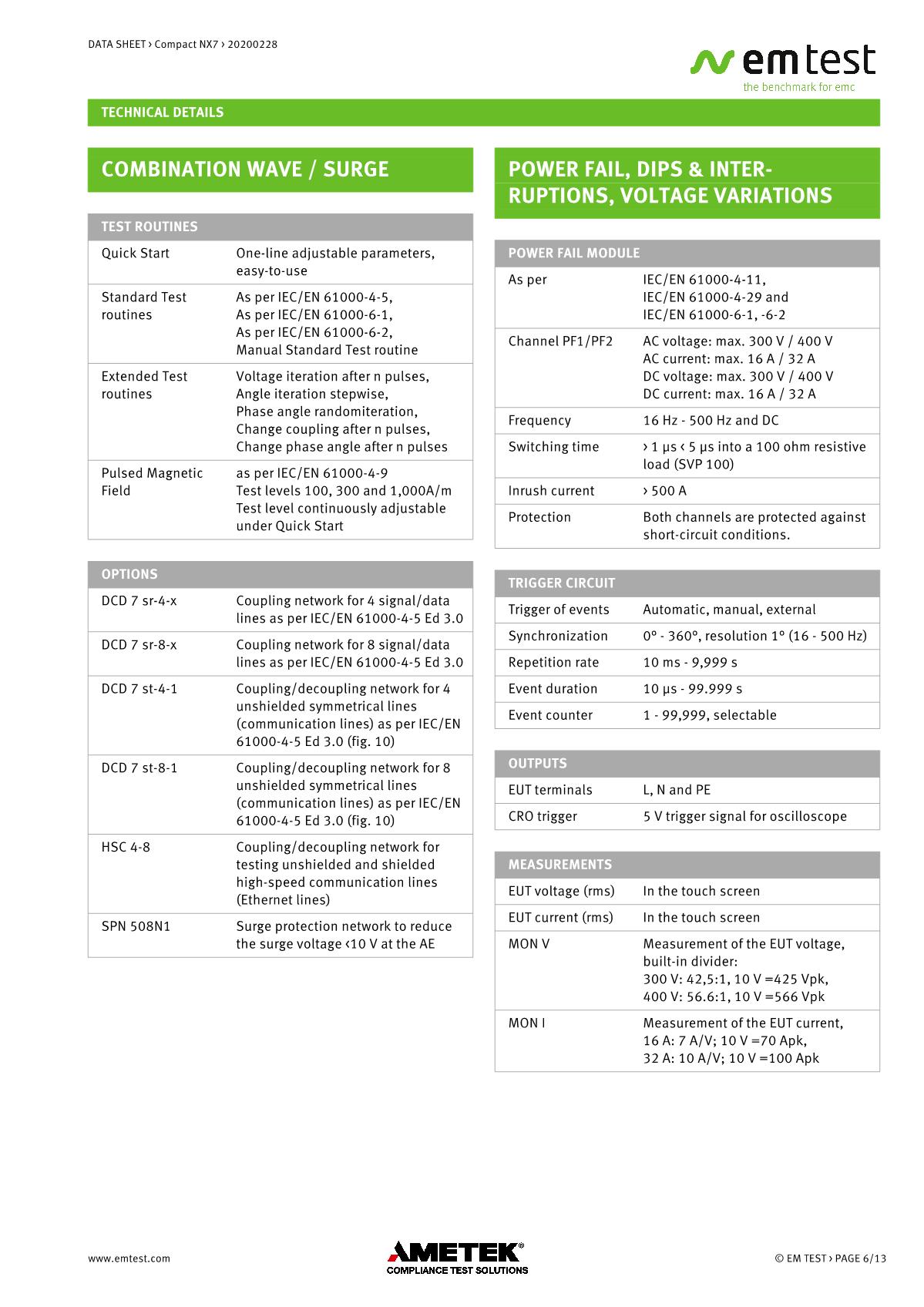 緊湊型下一代NX7是最通用的測試儀,品牌:EMTEST??蓾M足國際和商業(yè)標準的瞬態(tài)和電源故障要求。NX7采用易于使用的彩色觸摸屏,為預符合性抗擾度測試以及完全符合性測試和ce標志提供了經濟的解決方案。其內部單相耦合/去耦網絡(CDN)可通過每相高達200 A的自動控制外部CDN擴展至測試三相EUT。AMETEK CTS為磁場測試等各種應用提供大量附件。