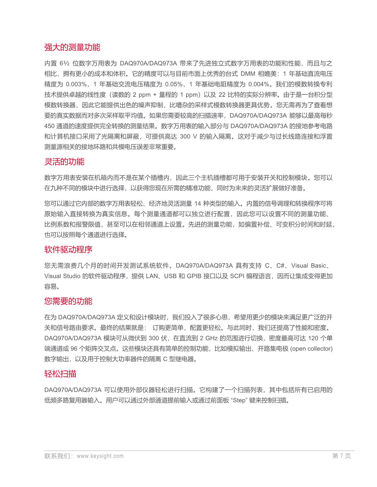 我們將高性能臺(tái)式數(shù)字萬(wàn)用表的測(cè)量引擎嵌入到一個(gè) 3 插槽主機(jī)中。您可以獲得久經(jīng)考驗(yàn)的是德科技測(cè)量性能、內(nèi)置信號(hào)調(diào)理功能的通用輸入、靈活的模塊化體系結(jié)構(gòu),所有這些功能特性均整合在一個(gè)低成本、緊湊型的數(shù)據(jù)采集儀器中。 DAQ970A/DAQ973A 具有 6? 位(22 比特)分辨率、 0.003% 的基礎(chǔ)直流電壓精度和超低的讀數(shù)噪聲。 這些性能與最高可達(dá)450 通道/秒的掃描速率相結(jié)合,讓您能迅速而準(zhǔn)確地完成數(shù)據(jù)采集任務(wù)。