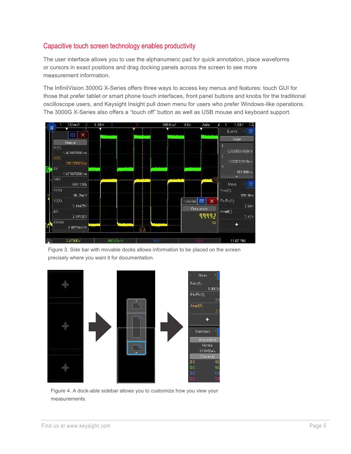 Keysight 3000G X 系列示波器支持您快速、輕松地執(zhí)行可靠的測量。 3000G X 系列將我們的一些高端技術(shù)帶到入門級示波器上,可以提供帶寬覆蓋 100 MHz 到 1 GHz 的 20 種型號,并配有直觀的 8.5 英寸電容式觸摸屏用戶界面。 憑借每秒 1,000,000 個波形的超快波形捕獲率,您能夠捕獲難以捉摸的毛刺和異常。 通過結(jié)合使用自動化軟件、波形和測量直方圖以及區(qū)域觸摸觸發(fā)功能,就可以一步輕松完成先進的測量——您只需用手指在屏幕上畫個方框即可實現(xiàn)。