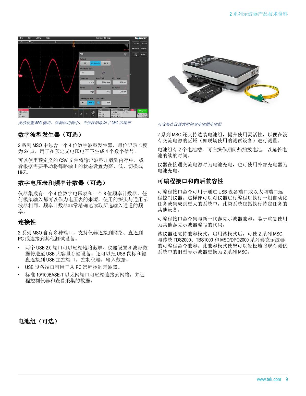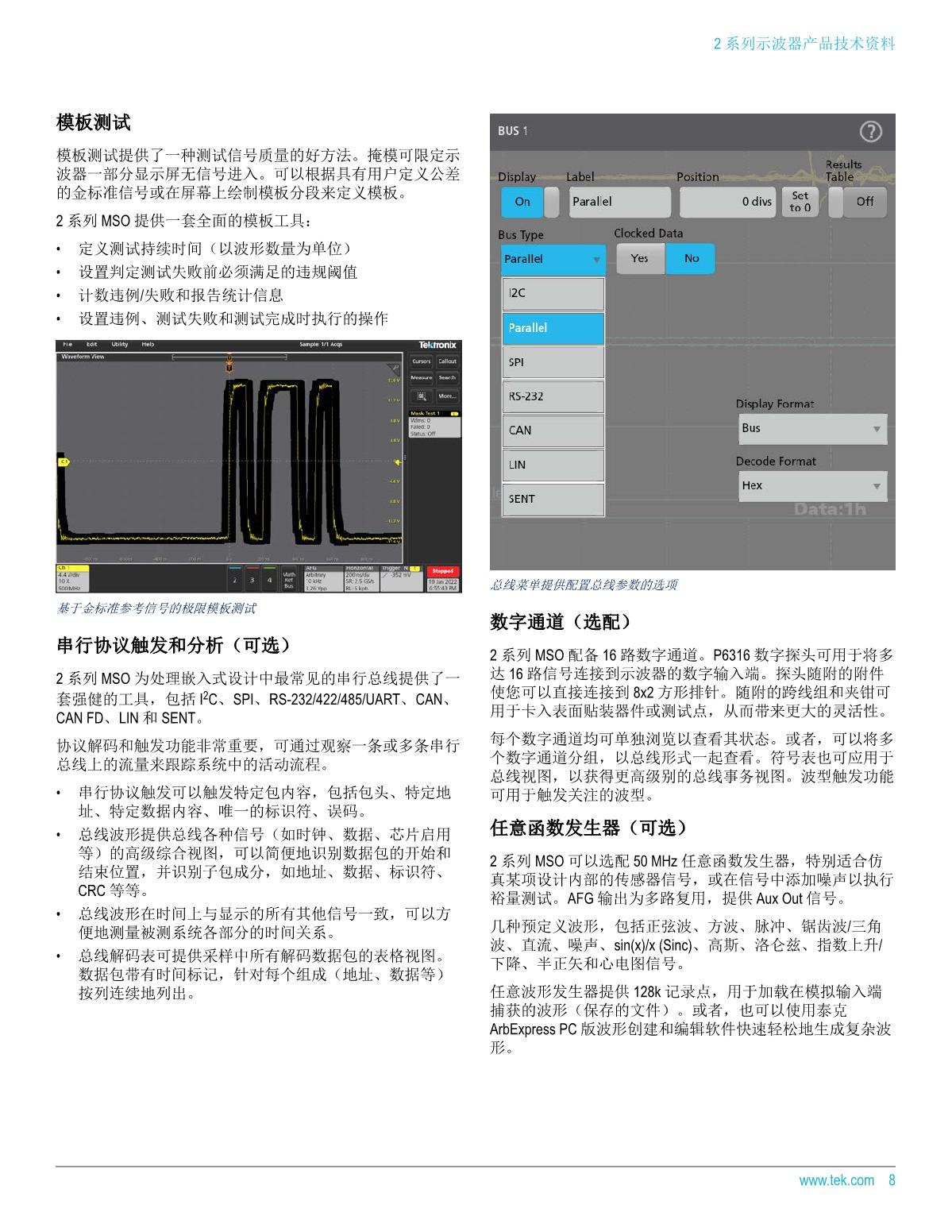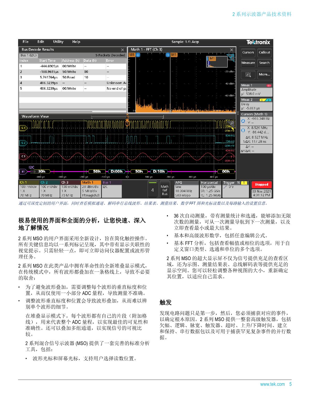 2 系列 MSO 具有多達(dá) 4 路模擬通道、 500 MHz 帶寬、 2.5 GS/s